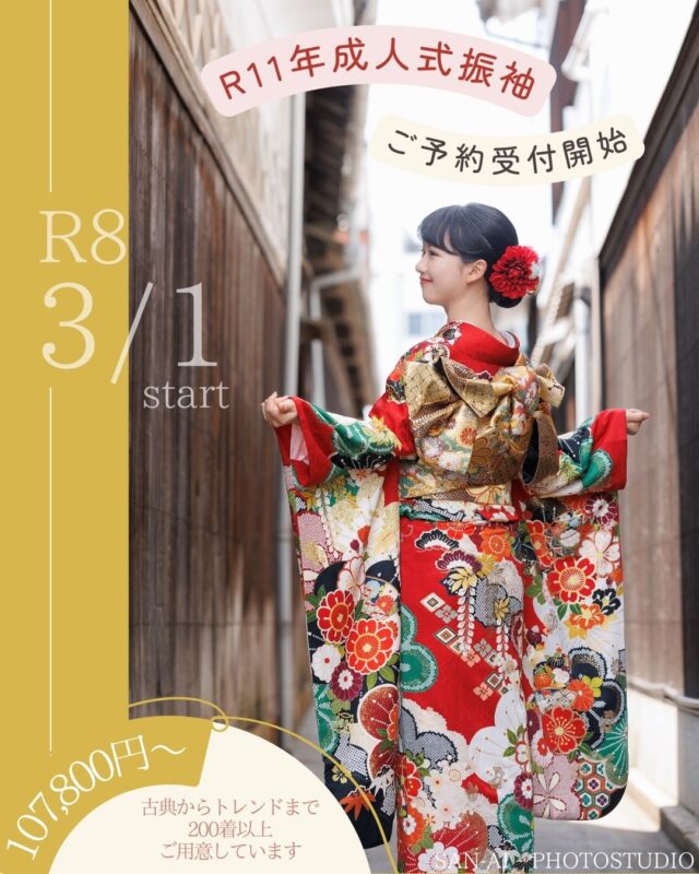 リーズナブルな価格の写真と衣装レンタルがセットになったプランが人気です。もちろん持ち込みの振り袖や紋つき袴を着て撮影も可能です。