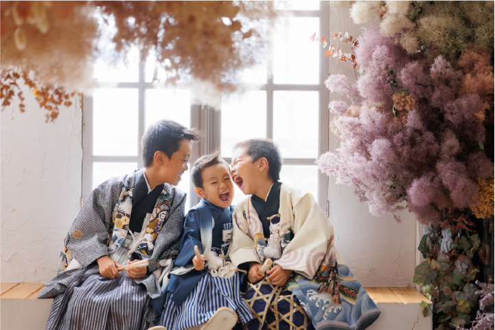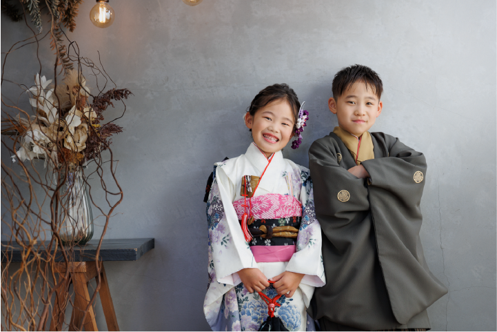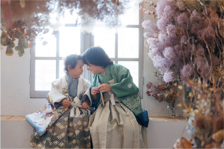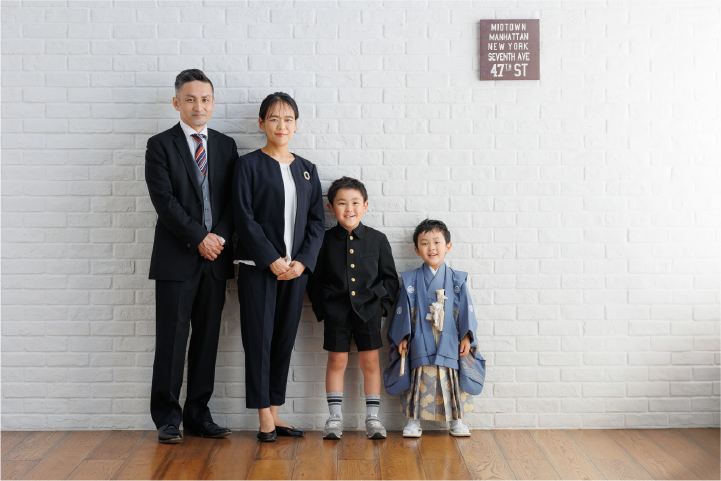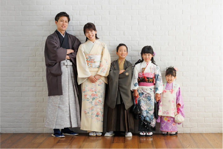 スタンダードな台紙仕上げから、着物や洋服、カジュアルな服装まで、ご家族にあわせたスタイルで撮影できます。