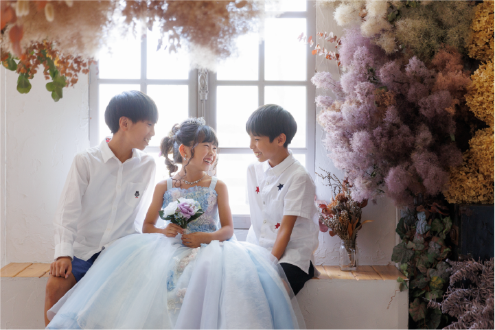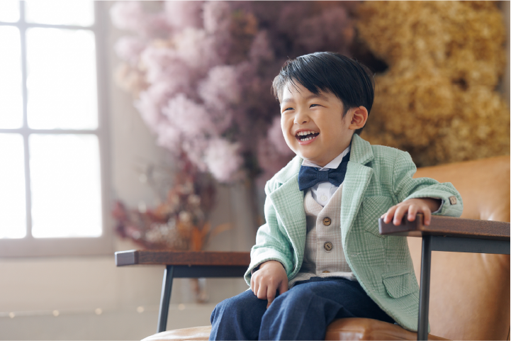 お子さまの今しか見られないあどけない笑顔を写真に残しませんか。これからも健やかに成長していくお子さまの今だけの姿を鮮明に美しく残したいとお考えでしたら、ぜひプロにお任せください。お客様のご要望にそったご提案をいたします。和装の着物・袴だけでなく、女の子はドレス、男の子はタキシードなど、洋装での撮影も可能です。