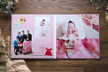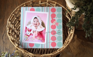 光沢のある写真表面加工されたクオリティーの高い、拘りが詰まったオリジナルアルバムです。ベビーに特化した絵柄でハートや音符などの柄が好まれています。
