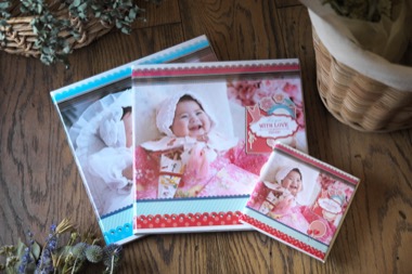 光沢のある写真表面加工されたクオリティーの高い、拘りが詰まったオリジナルアルバムです。ベビーに特化した絵柄で中面のレース柄や素材可愛いと評判です。