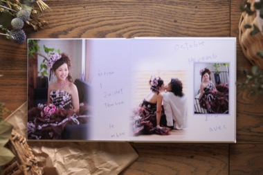 アクリル素材と写真に合わせてデザインされた本文が引き立てます。表紙と裏表紙の美しい製本仕上げも、このブックならではの特徴です。