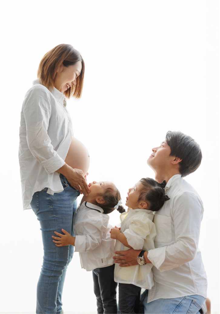 ママ一人でも家族と一緒でもどちらでもOKなプランです。キャビネ写真1枚と台紙代、1カットデータ付き。さらにお母様の衣装が含まれています。オプションで家族・兄弟写しも可能です。